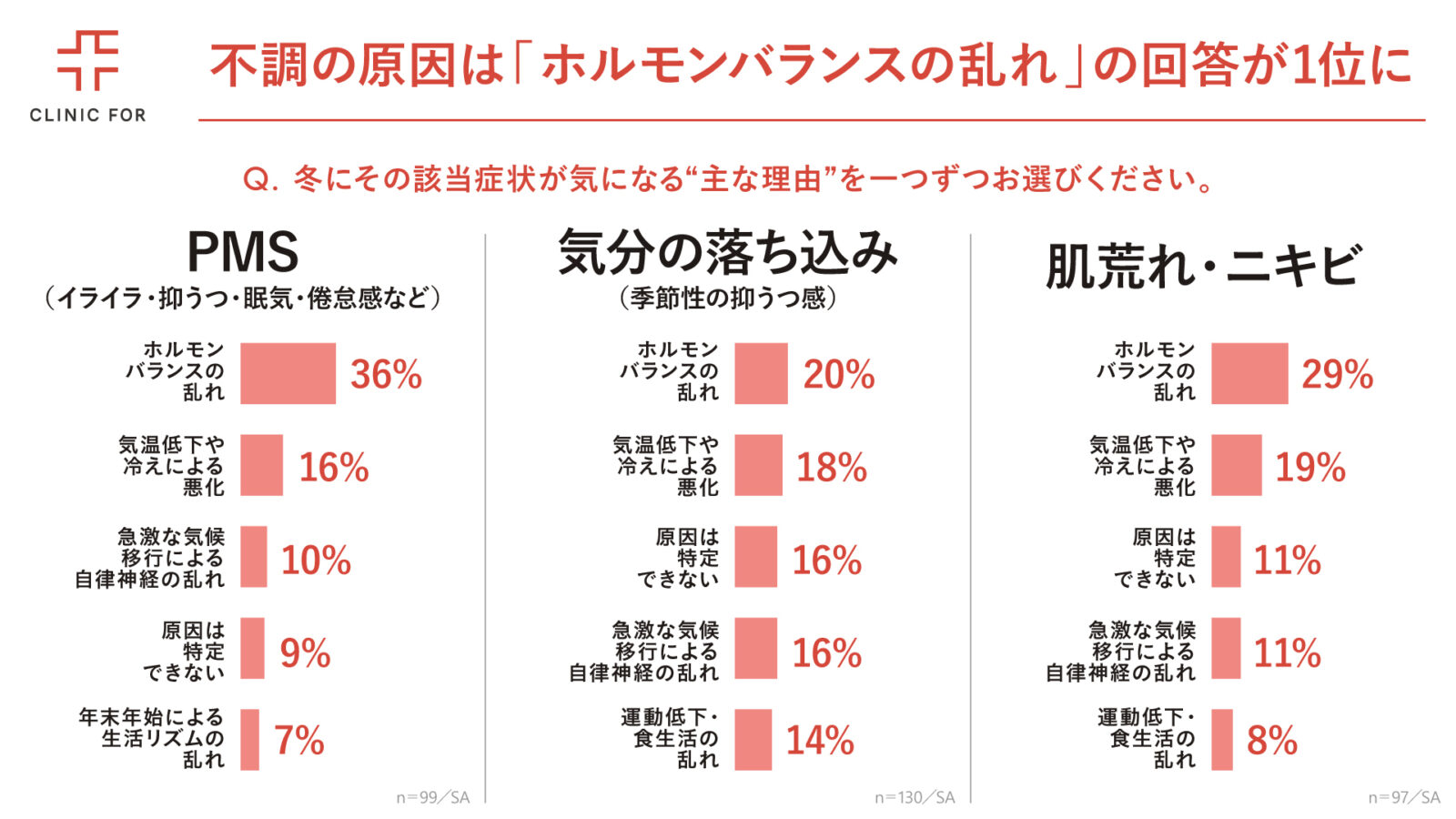 こうした状況を受け、クリニックフォアは冬に感じやすい心身の変化とホルモンバランスとの関係性について調査を実施しました。