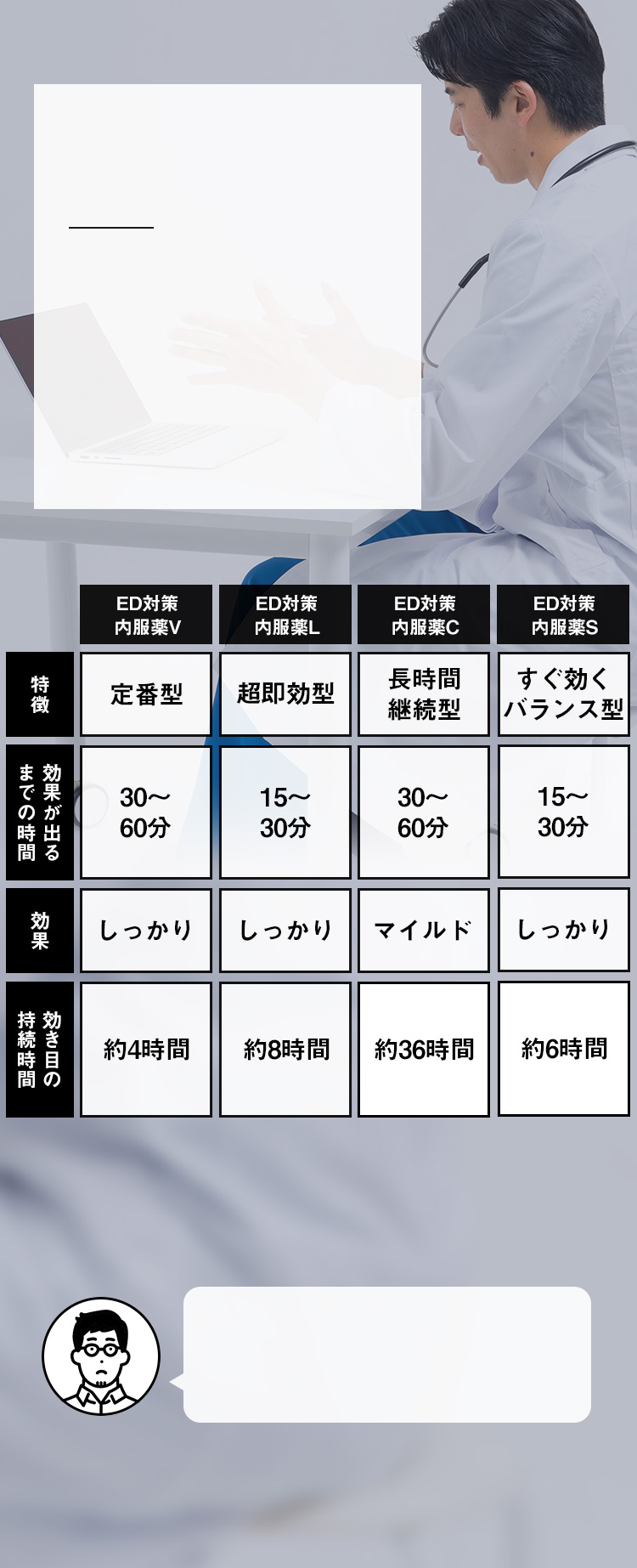 そのため、お薬の種類の変更・容量の追加をご希望の場合は、「追加配送」「定期配送」には該当せず、必ず医師の診療が必要になります。ご理解いただきますようお願いいたします。