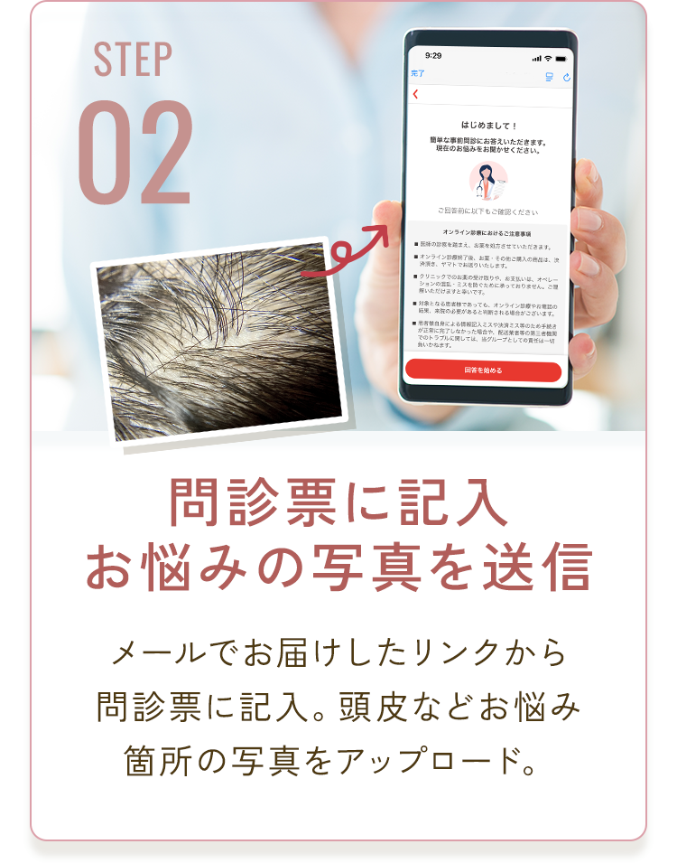 ※医師の判断により診療行為にあたるものはメールでの対応が難しく、 内容により再診察を受診いただく場合があります。
