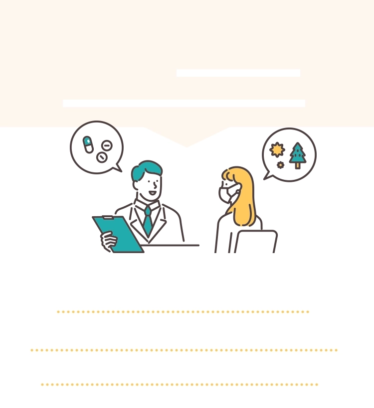 クリニックフォアの対面診療では、スギ・ダニアレルギー確定診断のための血液検査と初回導入が可能です。