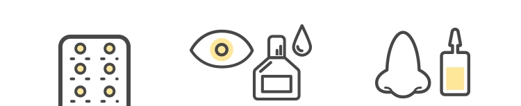 花粉症治療では内服薬、点鼻薬、点眼薬・眼瞼クリームなどのお薬で症状を抑えます。使用すればくしゃみ・鼻水・目のかゆみといったアレルギー性の症状を和らげられます。※