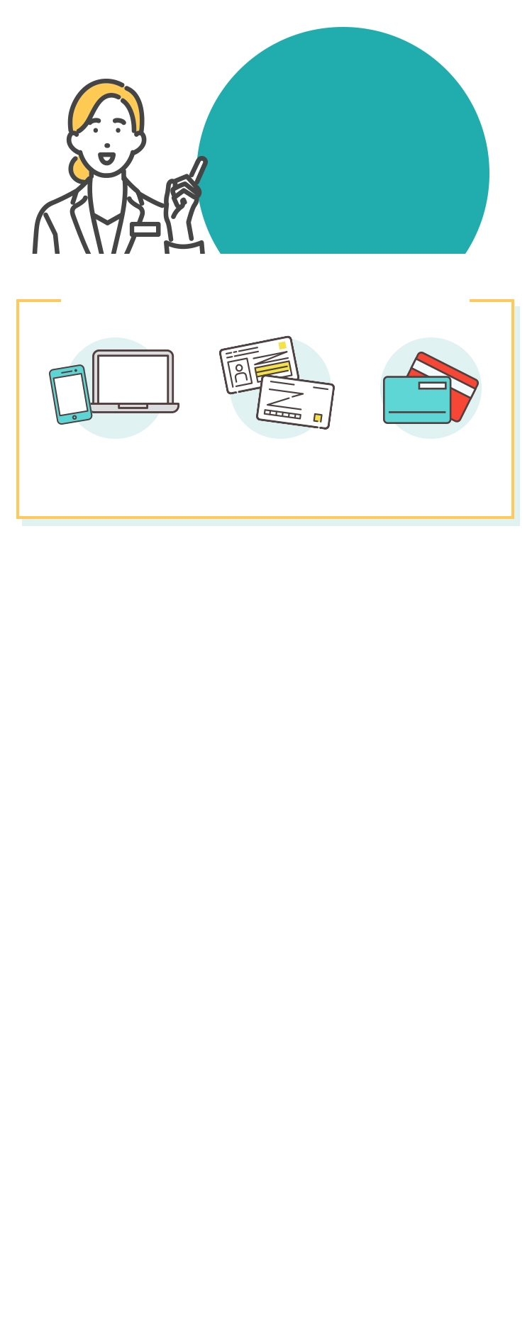 ビデオ通話ができるスマホ、保険証もしくはマイナ保険証、クレジットカードなどをご用意ください。