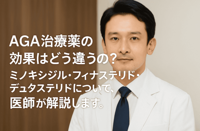 AGA治療薬の効果はどう違うの?ミノキシジル・フィナステリド・デュタステリドについて、医師が解説します。