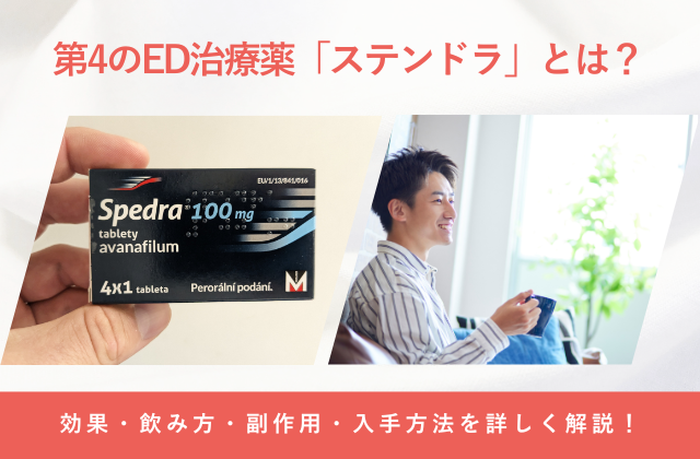 ステンドラは、「第4のED治療薬」と呼ばれているお薬です。ED治療薬として代表的な、バイアグラ、レビトラ、シアリスに次いで開発されたお薬であるためです。