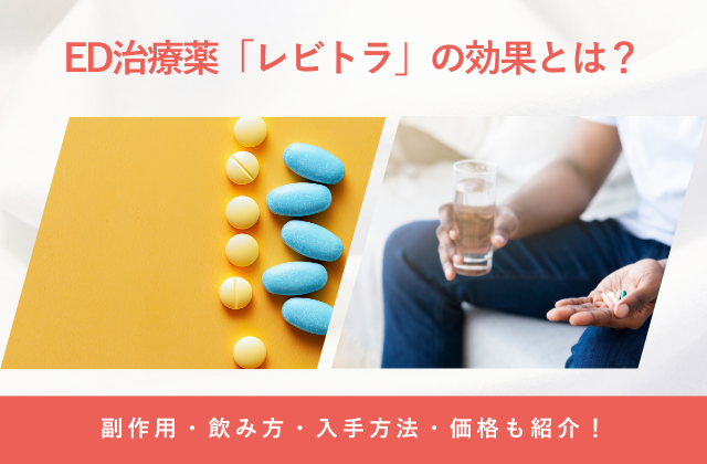 レビトラは、他のED治療薬と同じく、性的興奮が生じた際に血流を促進し、勃起をサポートする薬です。レビトラは他のED治療薬と比べて、勃起力が最も強く、硬さも出るとされています。さらに、水に溶けやすいという性質上、即効性も最も高く、早いと15分ほどで効果を感じられることがあります。