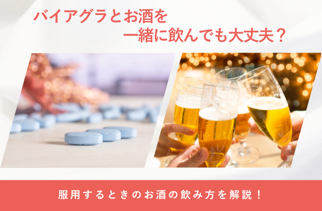 バイアグラとお酒を同時に飲むと、バイアグラの副作用が出やすくなるとされています。特に頭痛やホットフラッシュの症状は出やすいとのデータがあります。(※1)