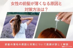 女性の多くは、髪の毛が全体的に薄くなるびまん性脱毛症が多いとされています。しかし、中には前髪が重点的に薄くなっていくケースもあるとされています。薄毛になる箇所や範囲は様々ですが、根本的な原因はほとんど同じで、ずホルモンバランスの乱れ等が考えられます。ただ前髪の場合には、牽引性脱毛症が原因であることも。