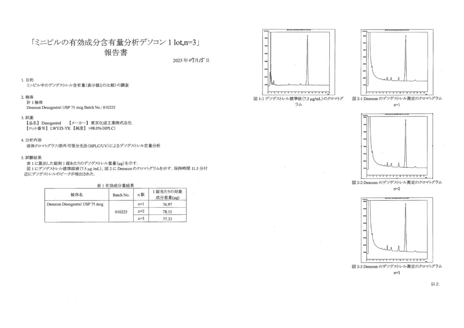 クリニックフォアでは患者様に安心してお薬を服用いただくため、セラゼッタ後発品(海外製ミニピル)について第三者機関による有効成分の成分検査を行い、有効成分が正しく含まれていることを確認しております。
