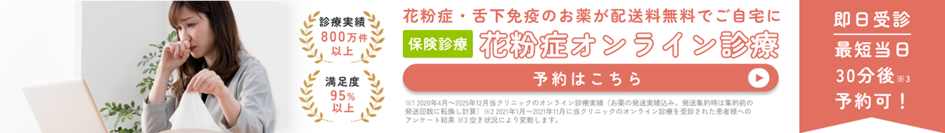 クリニックフォアでは、対面診療でスギ・ダニアレルギー確定診断のための血液検査と初回導入が可能です。安定して服用できている場合に限り、オンライン診療で継続処方を受けられるため、通院の負担を軽減できます。